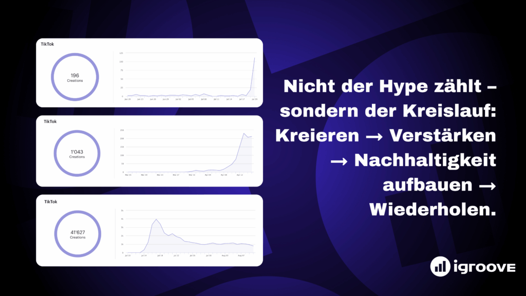 Ein viraler Moment auf TikTok ist ein kraftvolles Sprungbrett – die wahre Veränderung passiert jedoch durch Momentum verstärken und Langlebigkeit sichern. Und es geht niemals um einen einzigen Moment. Echtes Wachstum entsteht, wenn Künstler*innen den Zyklus meistern und ihn wiederholen: