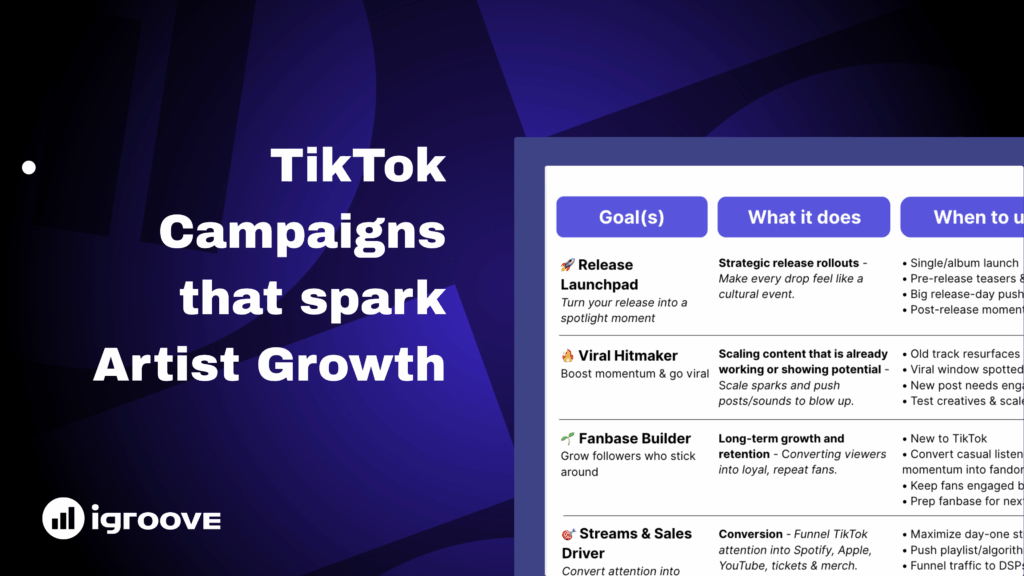 Going viral is great—but real success comes from turning that spike into a growing base of loyal fans. That means engaging with your audience, making your TikTok profile “follower-ready,” and running smart follower growth campaigns. If new listeners land on your page and don’t see a reason to stick around, they’ll scroll past and never come back. Converting fleeting attention into followers is what keeps every release alive long after the trend fades.